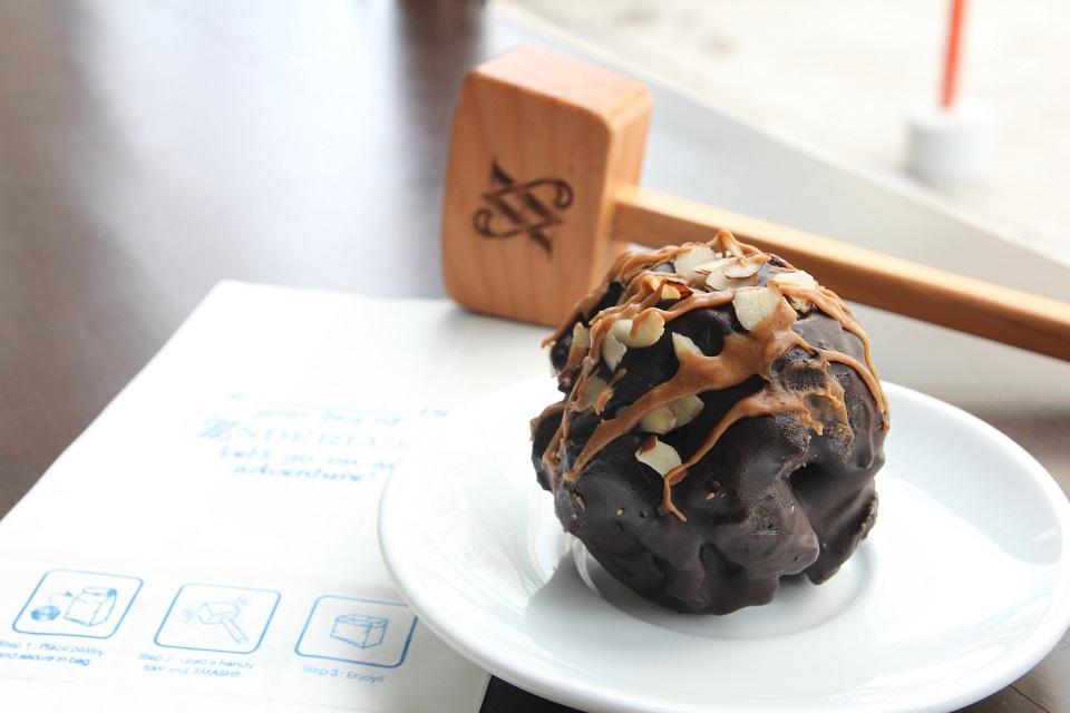 Choosing the flavor of your Schneebälle actually goes first before you get to smash this 10-centimeter shortcrust ball with a wooden mallet. Vanderlust offers plain dough options like Matcha, Peanut Brittle, Calamansi, Pineapple, and Strawberries & Cream. Chocolate-based Schneebälle include Mocha Tiramisu, Cookies and Cream, and Hazelnut Crunch.