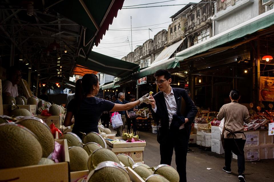"The fruit is fresher if it comes from overseas, like the USA or South Africa or Japan," he said as he browsed the Yau Ma Tei stalls.