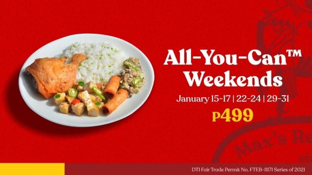 Of course the fine print: The promo is only available for dine-in from 10 a.m. to 8 p.m. on weekends, Fridays to Sundays (January 15-17, January 22-24, and January 29-31) in all Max's branches nationwide.