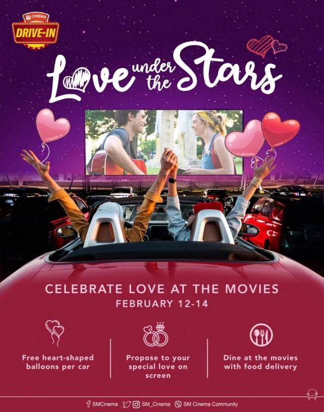 SM Cinema drive-in at SMA Mall of Asia will be screening five romantic movies from February 12-14. Each ticket (P350 per person) comes with bottled water, regular-sized popcorn, beef frank sandwiches, and must be purchased ahead and online. The venue can accommodate 106 vehicles per screening, and each vehicle can carry up to four people — that's a double date! People between 15-65 are allowed.