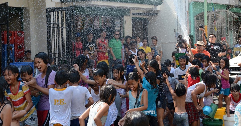 Kids enjoy a refreshing shower courtesy of Appledrive Project's 'Ligo Day.'