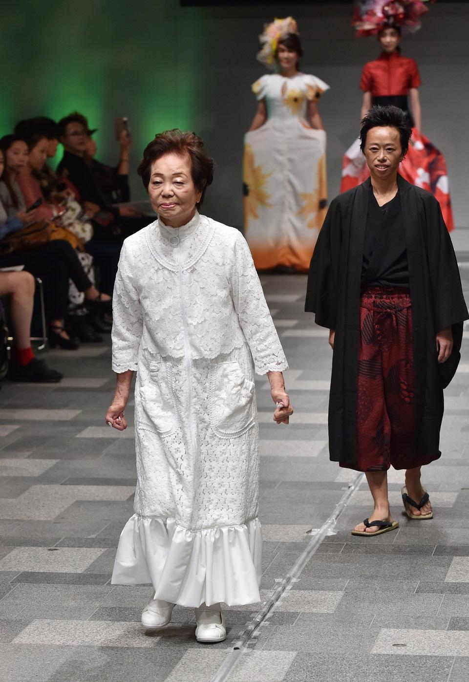 Tsuruta's runway presentations regularly feature a diverse line-up, and Wednesday's show was no exception, using models who were blind, in a wheelchair, or transgender, in addition to former patient Maki.