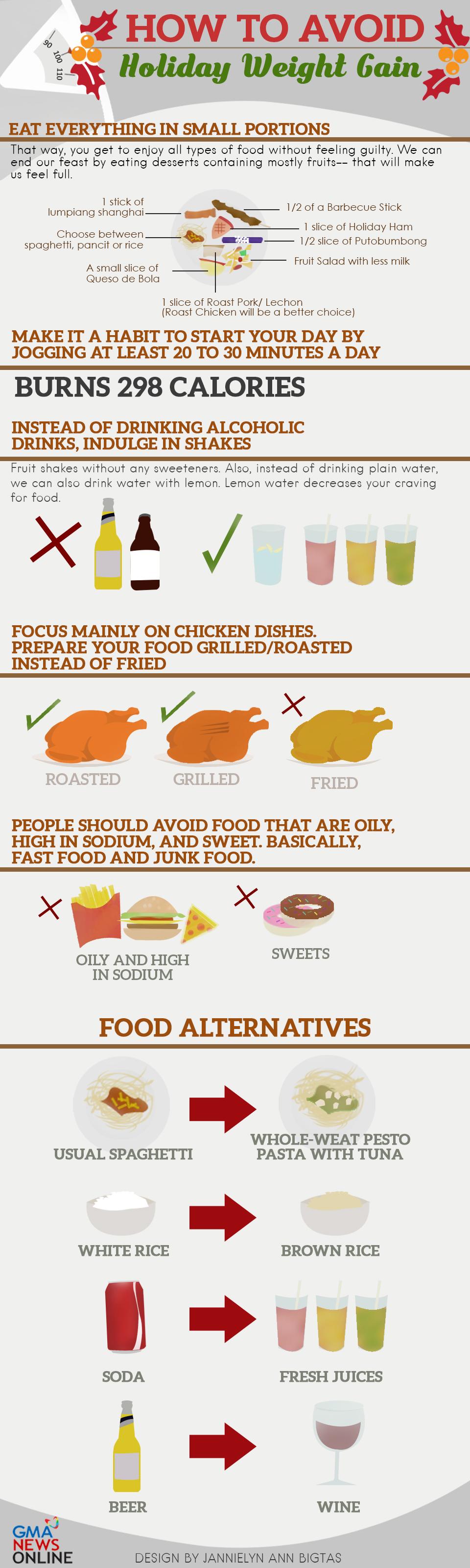 Parties have started since the first week of December. So if you're worrying about the weight you will gain this holiday, do not fret because there are simple steps you can follow to avoid it!