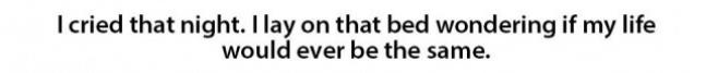 I cried that night. I lay on that bed wondering if my life would ever be the same.