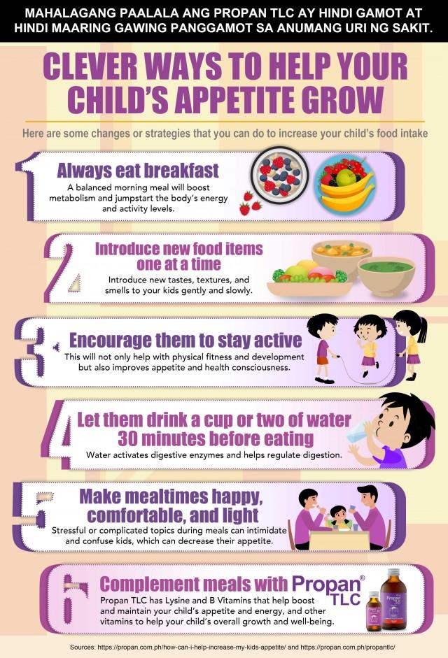 Here are some changes or strategies that you can do to increase your child’s food intake: