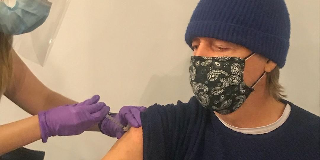 In recent social media posts, the Beatles vocalist shared a photo of him getting the jab while he is sporting a beanie, a printed face mask, and a plain blue shirt.