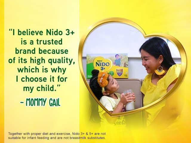 Gail and her fellow moms may have different parenting styles, but they all have one thing in common: they all give their children a balanced diet, proper exercise, and age-appropriate growing-up milk like NIDO 3+ and 5+. Milk is an important part of a toddler’s diet, but it has to be expertly formulated for children three years and up. NIDO 3+ and 5+ have all the necessary nutrients mentioned above to supply the right protection and nutrition kids need to grow and thrive during the toddlerhood years. It also helps them show the 10 Signs of Good Nutrition stated above, along with a proper diet and a healthy lifestyle.