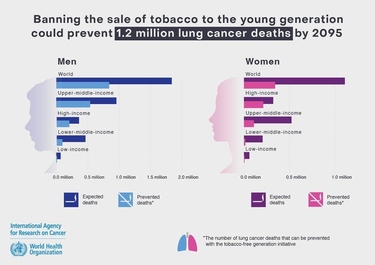 ???? #IARCpaper published in @TheLancetPH, the first study of its kind, shows that more than 40% of all #LungCancer ????deaths could be avoided in people born in 2006-2010 if tobacco smoking???? were eliminated????.https://t.co/Mc1JUGTsTI pic.twitter.com/wKEqezNZZ5