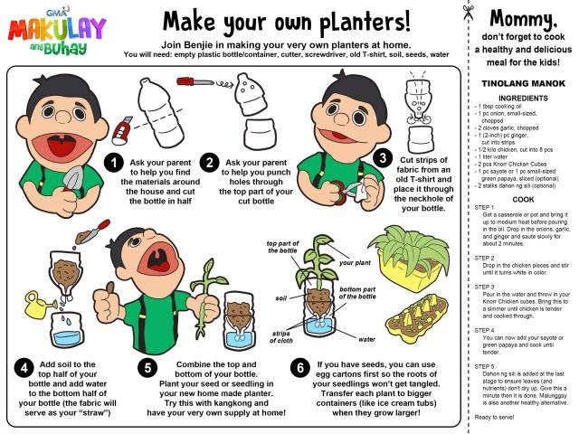 For small spaces, these planters can be made at home. Make them with the kids and show them how anyone can find ways to make their own planting spaces and care for plants easily.