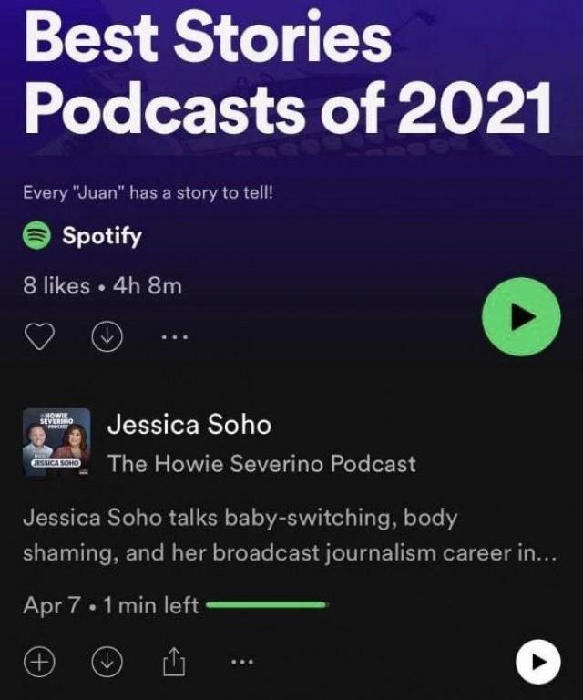 Spotify just hailed Jessica Soho's interview on "The Howie Severino Podcast" as one of its Best Podcast Stories of 2021.