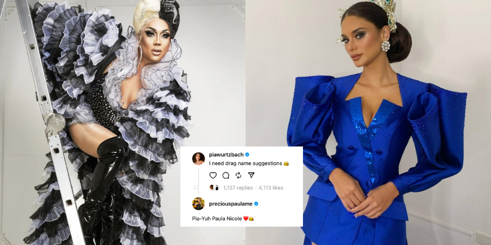 On Threads, Pia Wurtzbach asks for a drag name, and Precious Paula Nicole has the perfect response