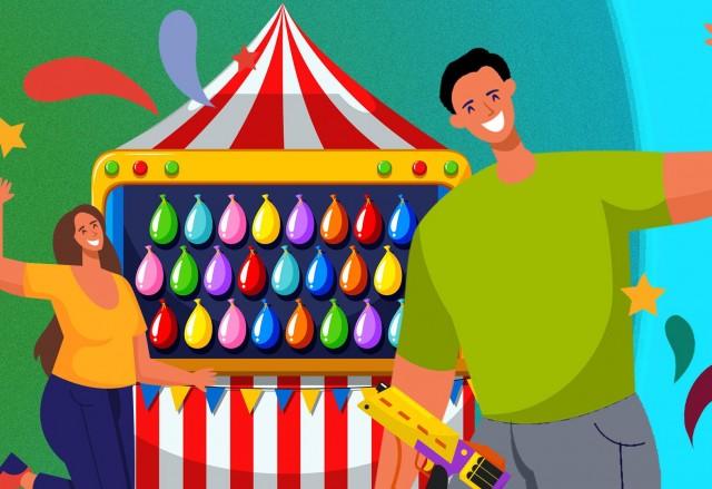 Skill-based games involving projectiles are standard fare in the peryahan. For example, the main goal of shooting games, whether using pellet guns or darts, is to hit targets like bottles or balloons. Tossing games, on the other hand, is all about successfully landing your projectile—a ring or a ball, into a target spot. In projectile games, players only have a limited number of shots, with the option to buy another round to continue playing and stack points for better rewards.