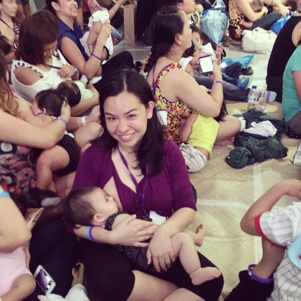 Lia feeding Aiyah at Hakab Na 2015, during which 316 mothers breastfed all at the same time in celebration of August as National Breastfeeding Awareness Month.
