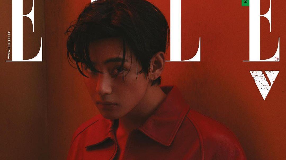 V of BTS is looking like the true superstar that he is on the cover of Elle Korea.