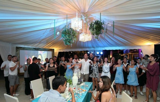 Thank you for the music, resort staff sing to the guests as the celebration draws to a close. Courtesy of Discovery Shores.