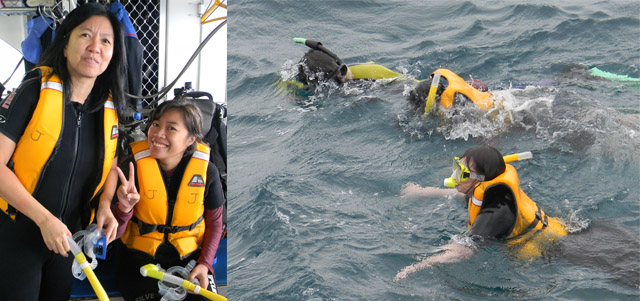 The author (L) with Kristine Alave try snorkelling at the Great Barrier Reef. Henrylito Tacio