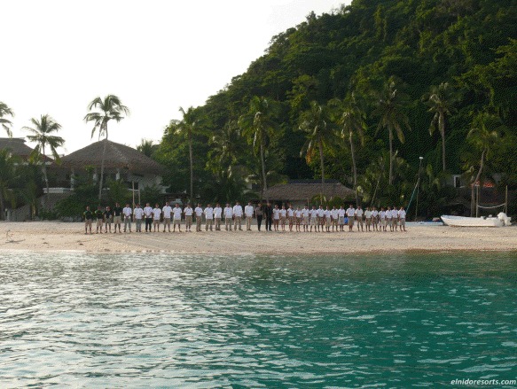 Pangulasian Island resort staff gives a grand welcome to its first guests. El Nido Resorts