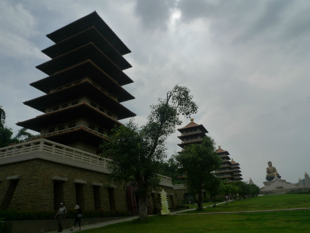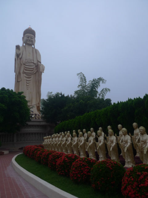 All the restaurants in Fo Guang Shan and their satellite monasteries around the world are called Water Drop, from the Buddhist saying, “One drop of kindness will be paid back in ripples.” They serve vegetarian cuisine, but prepared in different ways, from traditional Chinese cooking to more Western fare. The food is delicious and of exceptional quality, the kind of vegetarian cuisine that will make meat lovers forget that they aren’t eating flesh. This ties into Fo Guang Shan’s philosophy of making Buddhism accessible, of appealing to the senses of the modern human in order to help them understand the Middle Way. As Buddhism is about being gentle to all living things, Fo Guang Shan has also made it a mission to protect the environment. You can see this philosophy being carried out daily, such as in the practice of offering plastic roses encased in tiny-heart-shaped containers instead of fresh flowers to Kuan Yin. After all, it is the intention that counts, and this way, not only do the flowers always look good, they can be reused the next day. The monastery is next to the Buddha Memorial Center. Opened in 2011, the Buddha Memorial Center is a shrine/tourist attraction that houses the world’s largest bronze statue of Buddha in a sitting position, and a relic—supposedly one of Buddha’s teeth—in the main shrine. The eight pagodas leading to the shrine house exhibits that are meant to take the visitor through the history of Buddhism. It’s not as boring as it sounds, because most of the exhibits are interactive.