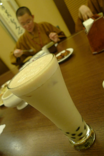 The Water Drop restaurant serves a variety of yummy vegetarian treats, including their version of milk tea.