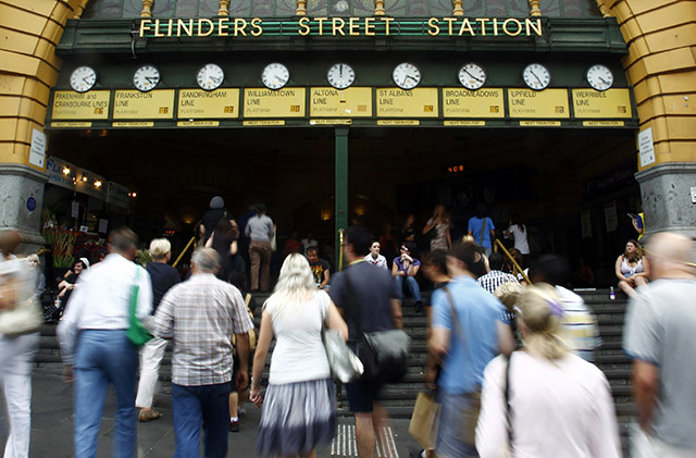 Office workers head to Flinders Street Station in central Melbourne on February 10, 2011. REUTERS/Mick Tsikas