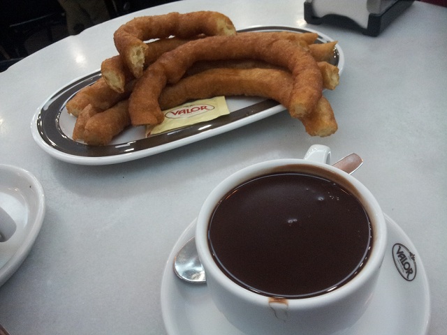 Churros con chocolate at Valor Cafe to combat the nip in Catalonia's winter weather.