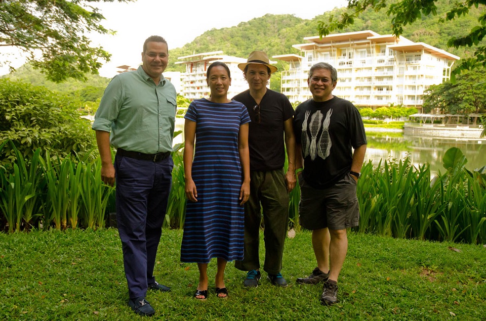 Celebrity chef and WWF ambassador for the Coral Triangle Initiative Bobby Chinn (second from right) and WWF-Philippines CEO Lory Tan (far right) pose by Pico de Loro Cove's lagoon with Costa del Hamilo, Inc. SVP for Operations Rona Torres-Tan and Pico Sands Hotel Area general manager Walid Wafik.