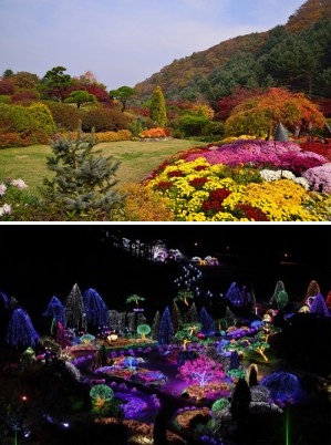 The Garden of Morning Calm in the daytime (top) and at night. en.ggtour.or.kr