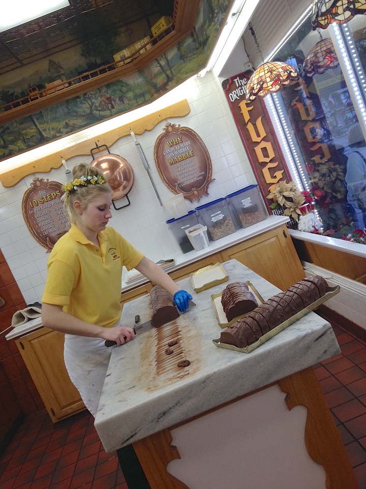 We walked along Main Street and took in the sights. My eyes darted towards the cheese and sausage factories, leather shop, gift stores, and the fudge and candy kitchens. We couldn’t resist going inside the fudge shop to watch them make the sweet treats, and geot some to take home as well.