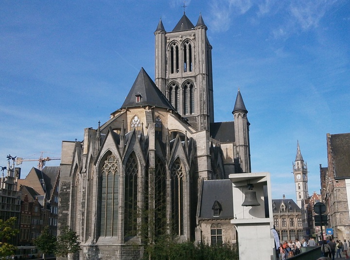 The St. Nicholas Church too, did not fail to inspire. Begun in the 13th century and made of blue-gray stone, it had a tall tower (one of the three spires that mark Ghent) with four slender turrets below it. Inside were very high, vaulted areas where light streamed through softly.