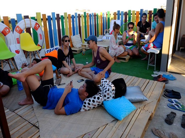 Boracay Box and Ladder Hostel has lounge areas for guests who want to escape the busy white beach, such as this rooftop relaxation area.