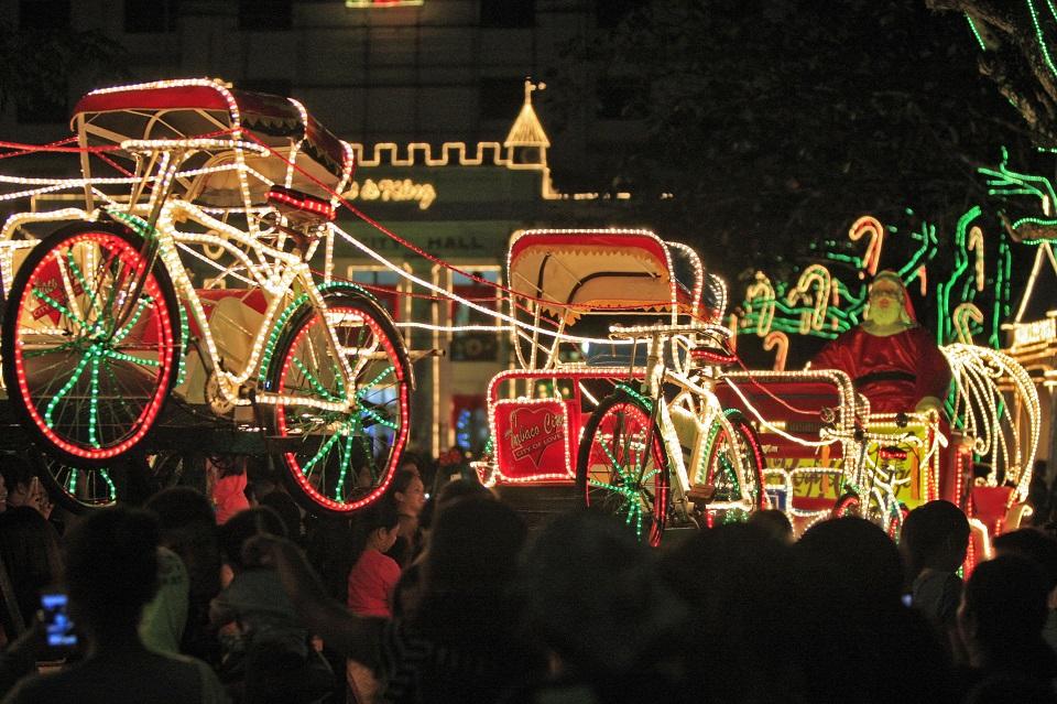 Santa’s sleigh is pulled by padyak in Tabaco City, Albay