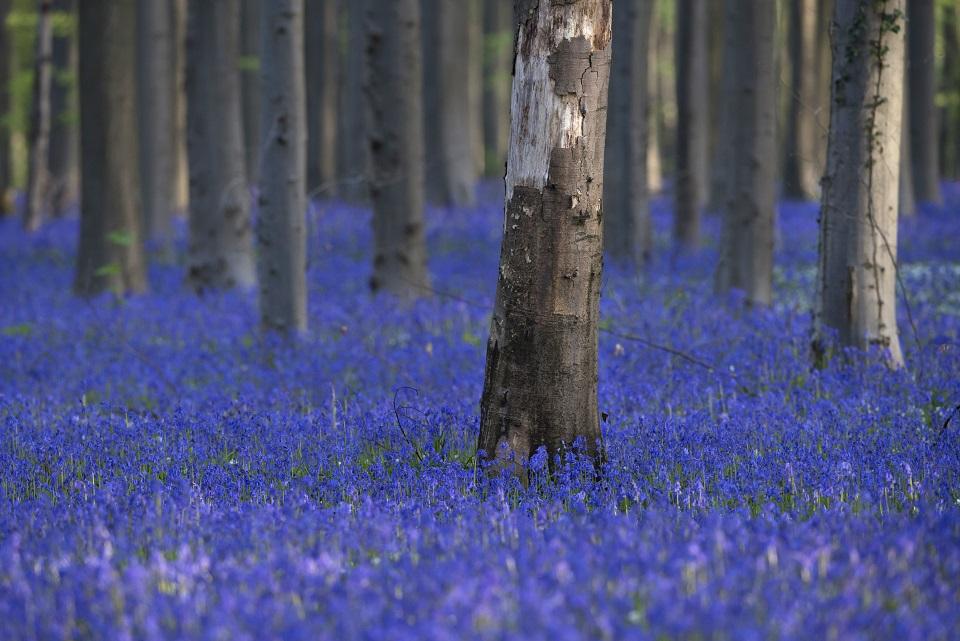 For two or three weeks in April the ground of the Hallerbos wood just outside the drab capital of Brussels is transformed into a breathtaking sea of shimmering purple.