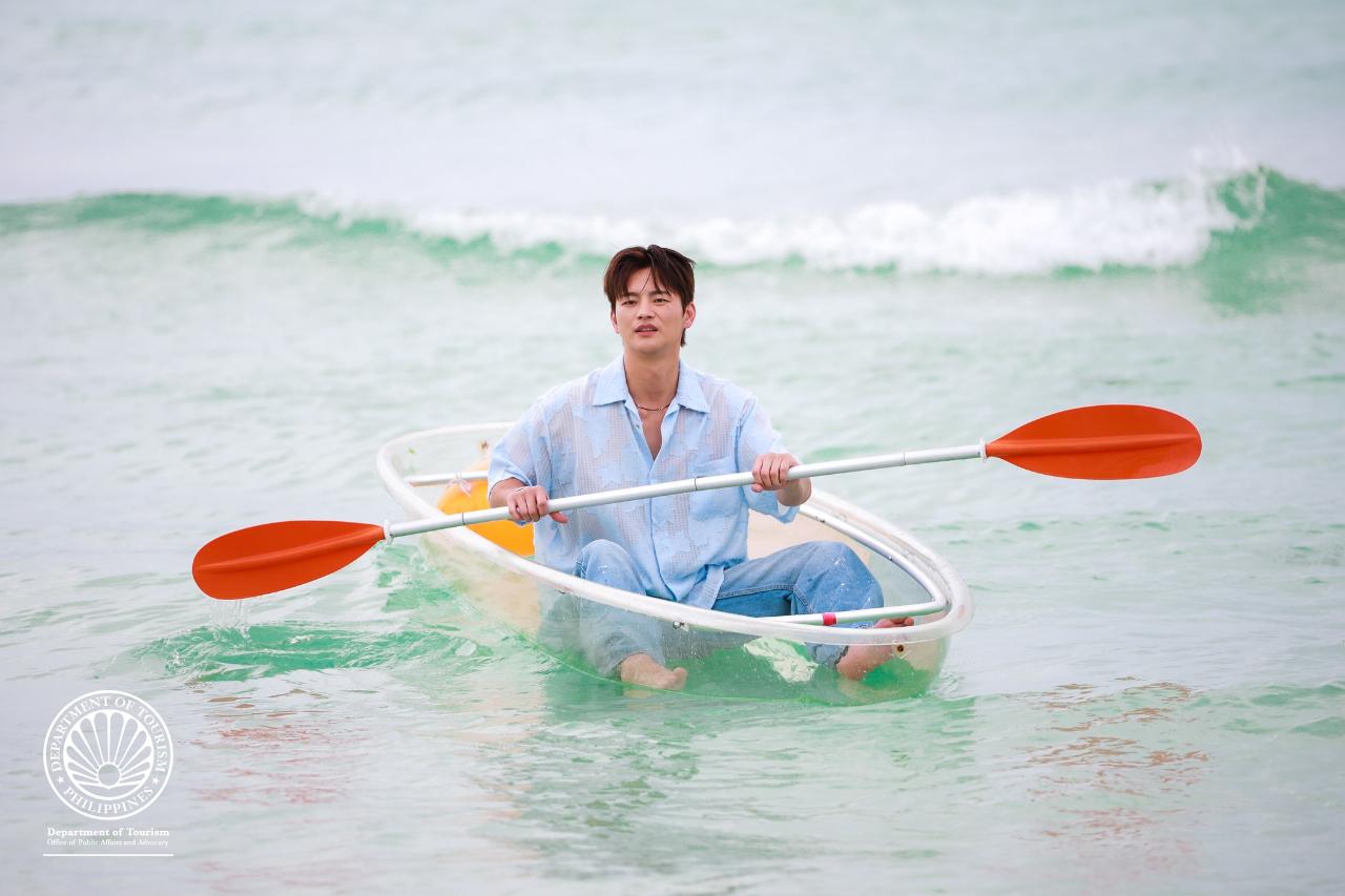 In photos posted by the Department of Tourism (DOT) on Facebook, the South Korean actor and singer was seen enjoying the island’s white sand, trying out the tourist-favorite crystal kayak in Station 1, and touring aboard a yacht.
