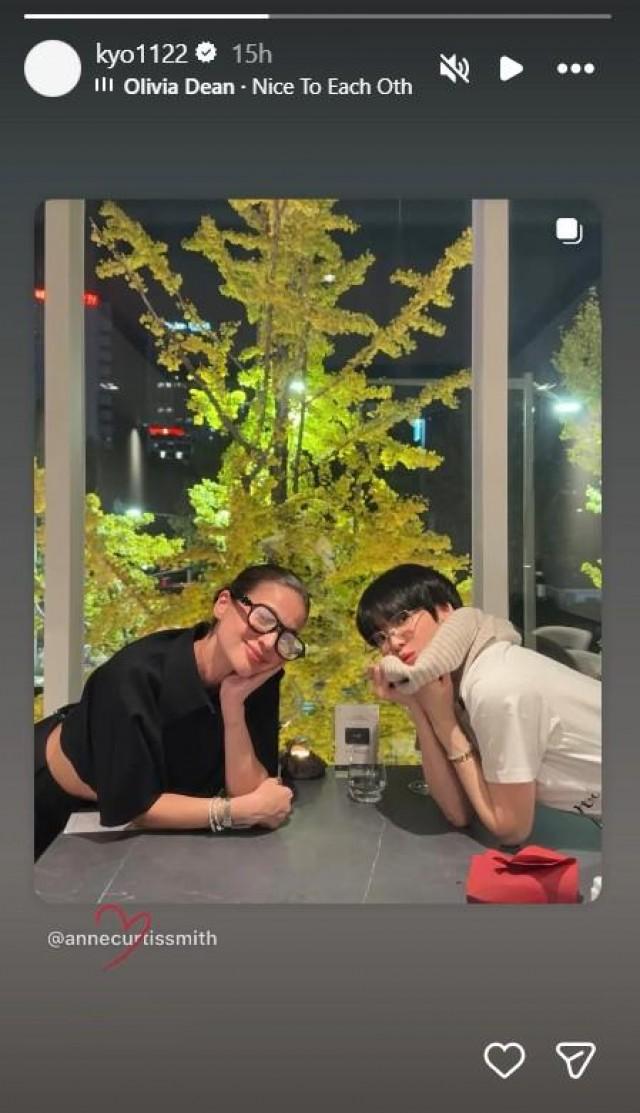 Hye Kyo shared Anne’s post on her Instagram Stories and added a heart emoji.