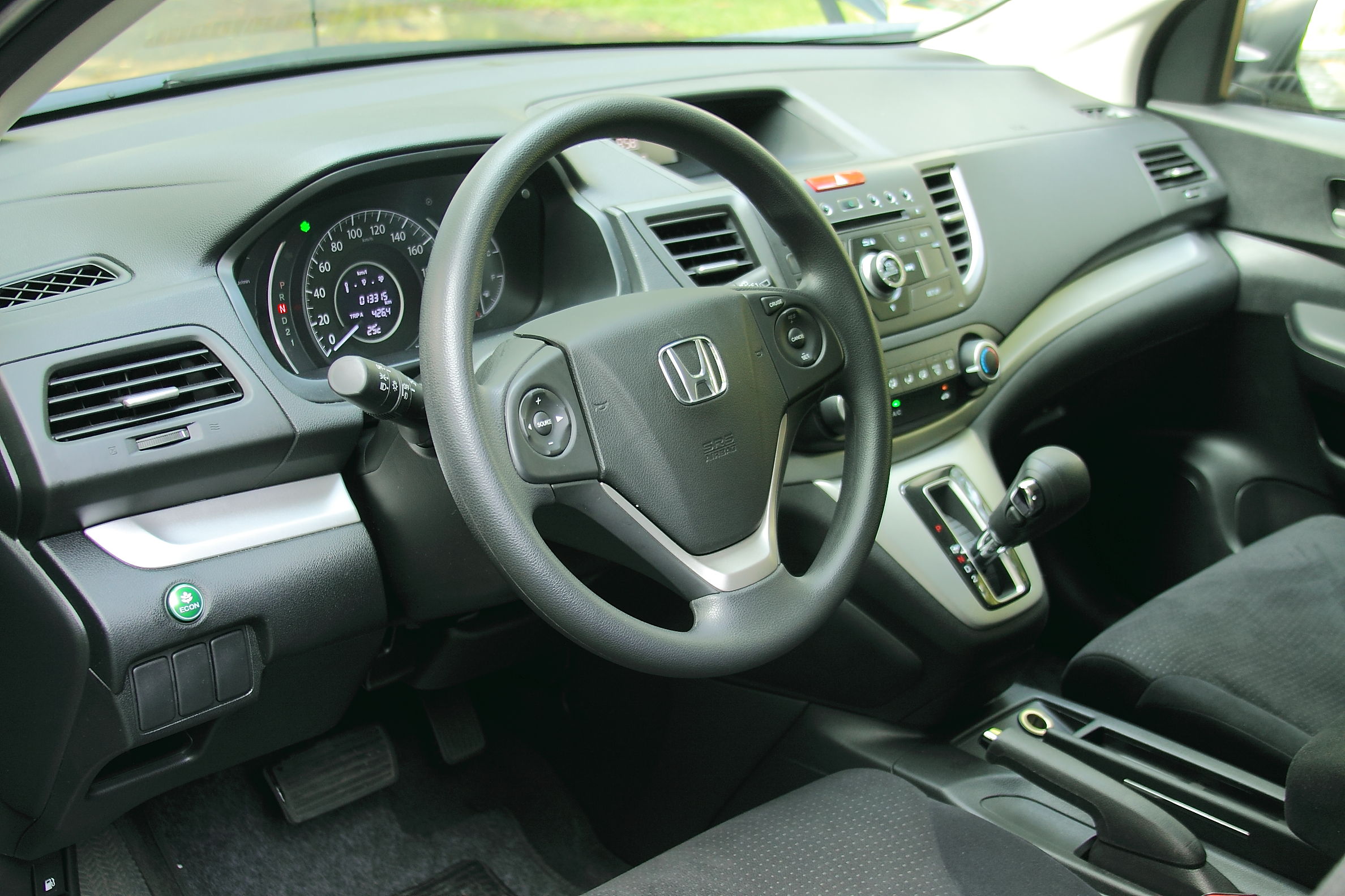 Throttle response is great, despite the two-liter straight four lugging 1,515 kg of curb weight. Engaging the “ECON” button below the extreme left aircon vent chokes acceleration, preventing the rev counter from going beyond 4,000 rpm and decreasing gas consumption. Turn off “ECON” — a leaf icon within the gauge cluster goes off— and the CR-V is free, with the five-speed slushbox willing to downshift at half throttle and the tachometer needle going up to 6,000 rpm. For city driving, the “ECON” is recommended, but best turned off for highway jaunts.