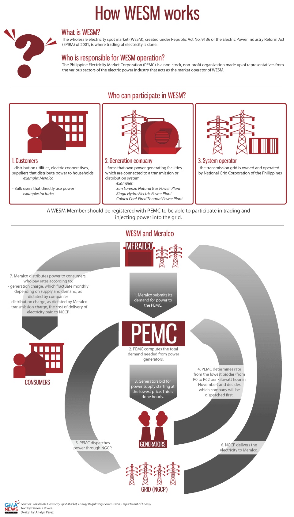 Signed by President Gloria Macapagal-Arroyo on June 8, 2001, EPIRA paved the way for the creation of the wholesale electricity spot market (WESM), a trading floor where power is bought and sold.