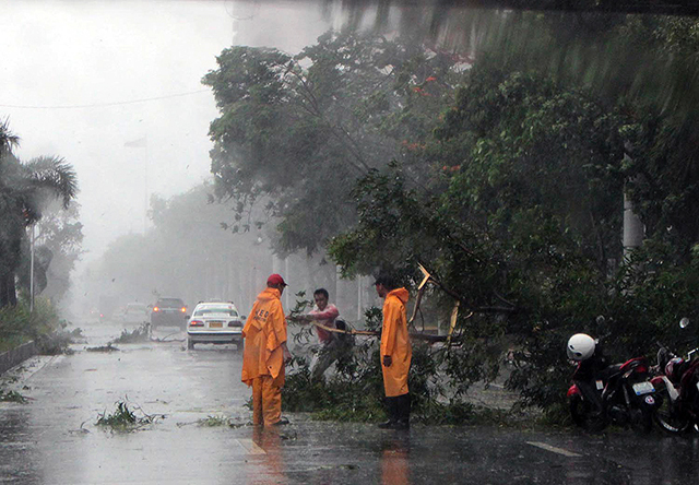 Typhoon Glenda raked through Luzon on Wednesday, cutting a northwest swathe of rain and strong winds from Bicol, toppling electric poles and disabling transmission lines.