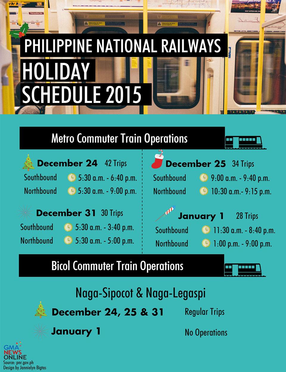 The Philippine National Railways will run fewer commuter trains during the holidays.