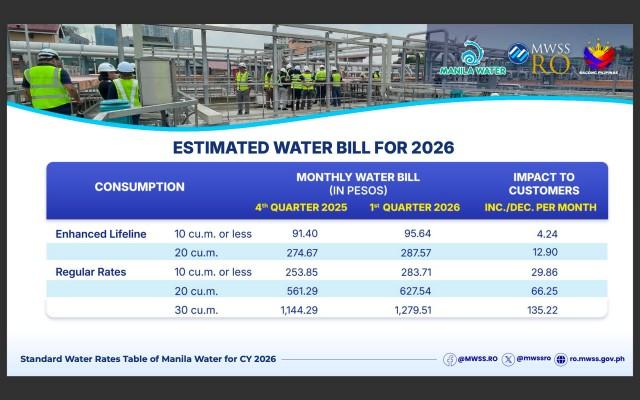 Manila Water, Maynilad monthly bills to increase in January 2026