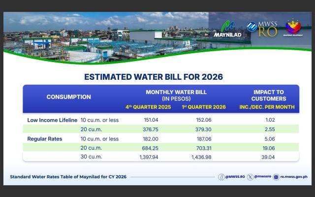 Manila Water, Maynilad monthly bills to increase in January 2026