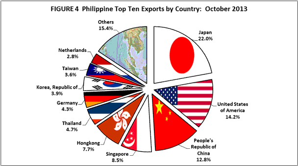 Japan, US, and China remain the Top 3 buyers of Philippine products, according to this chart from the National Statistics Office.