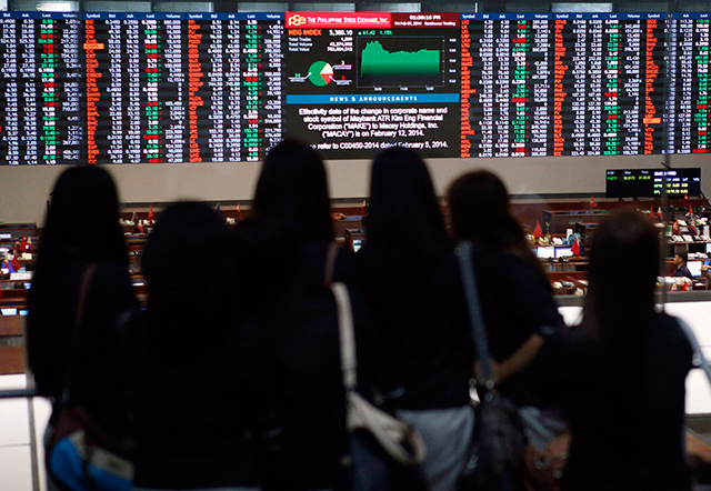 University students monitor trading on the Philippine Stock Exchange in Makati on Friday. Photo by Reuters/Erik De Castro