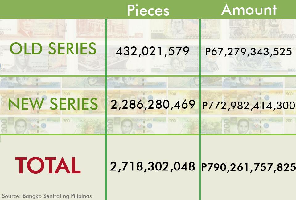 The old peso bills account for 15.89 percent of the total number of banknotes in circulation or 8.51 percent of the total value as of September 30, central bank data show.
