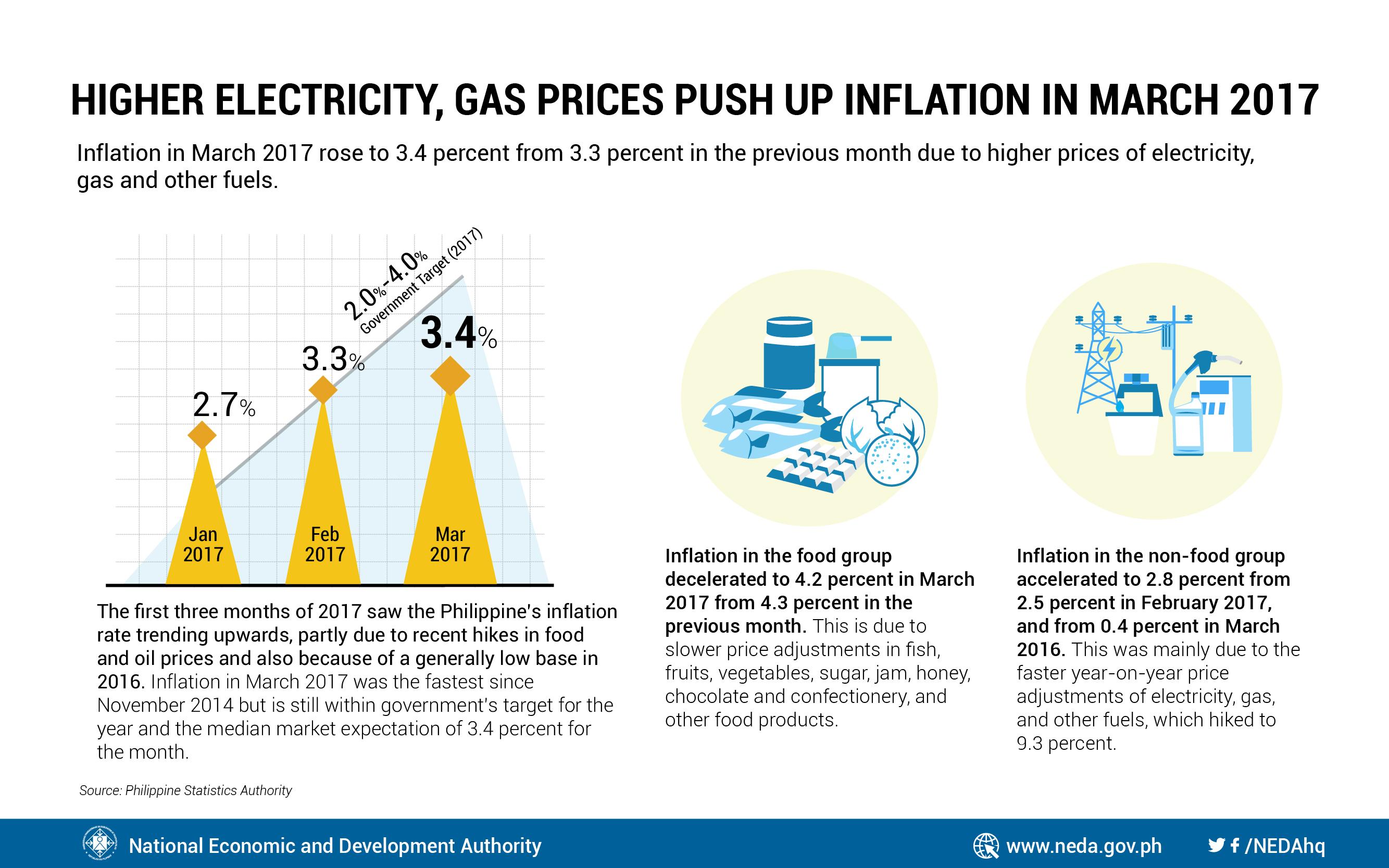 Economists noted the 3.4 percent rate is in line with expectations, given the depreciation of the Philippine peso.