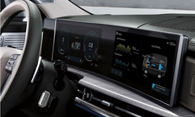 Inside, is the Infotainment system displays information about hybrid driving, such as electric motor usage and fuel efficiency.