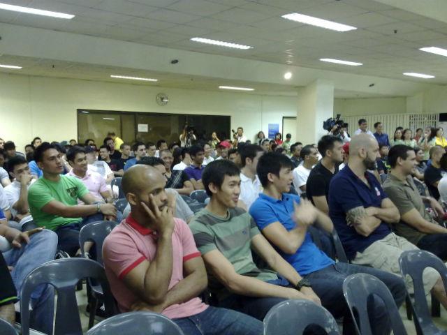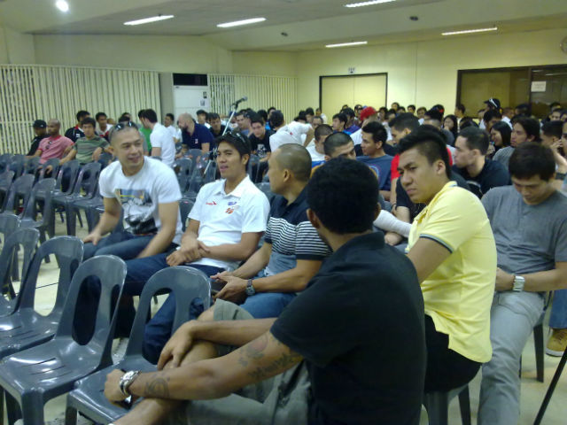 Philippine Basketball Association (PBA) players, led by their commissioner Chito Salud, attend a tax compliance forum hosted by the Bureau of Internal Revenue at its head office in Quezon City on Monday. Photo by Asti Flores