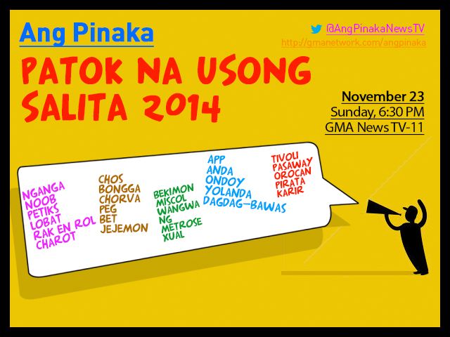 Find out the Top 10 “Ang Pinaka: Patok na Usong Salita 2014” this Sunday on ‘Ang Pinaka,’ November 23 at 6:30PM on GMA News TV.