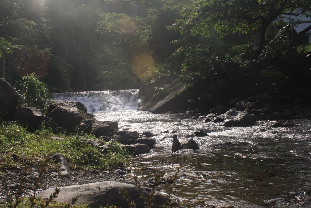 The tricycle will drop you off at a bamboo bridge over the first stream you must cross. There’s already a low, wide waterfall at this point that reflects the light perfectly at around 10:00 AM.