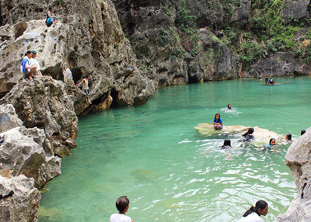 Visitors and locals enjoy a swim at the Tangke lagoon in Isla de Gigantes Sur in the town of Carles in Iloilo. This farthest point of Iloilo from the provincial capitol is fast gaining popularity as a tourist destination. Photo: Tara Yap/GMA News