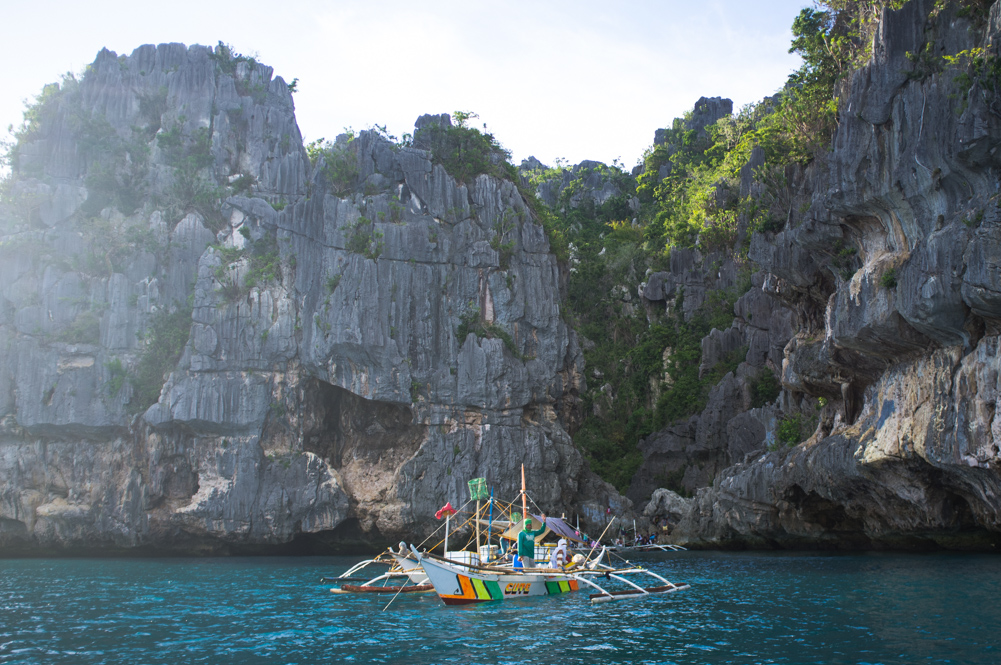 A bangka carrying tourists weaves through the cliffs. Photo: Joseph Angan